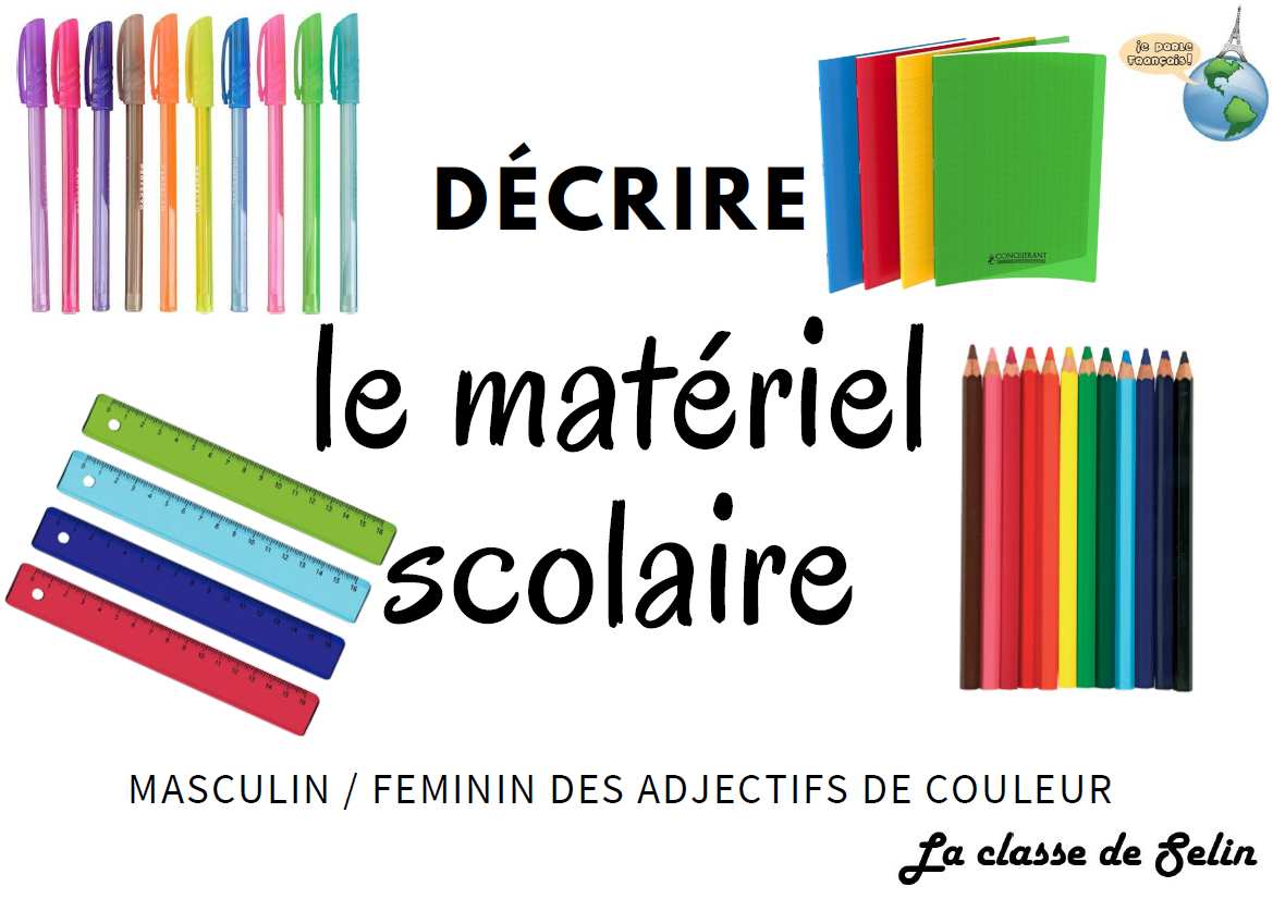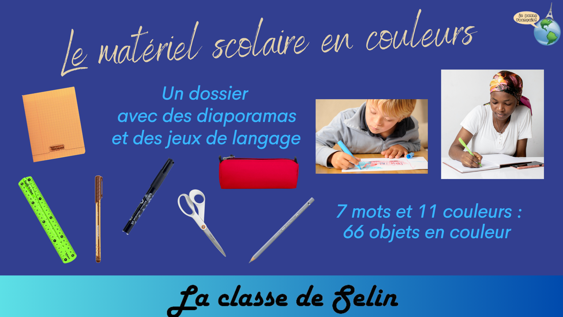 Ils travaillent ainsi l'accord des adjectifs de couleur dans une phrase en réutilisant le lexique du matériel scolaire.